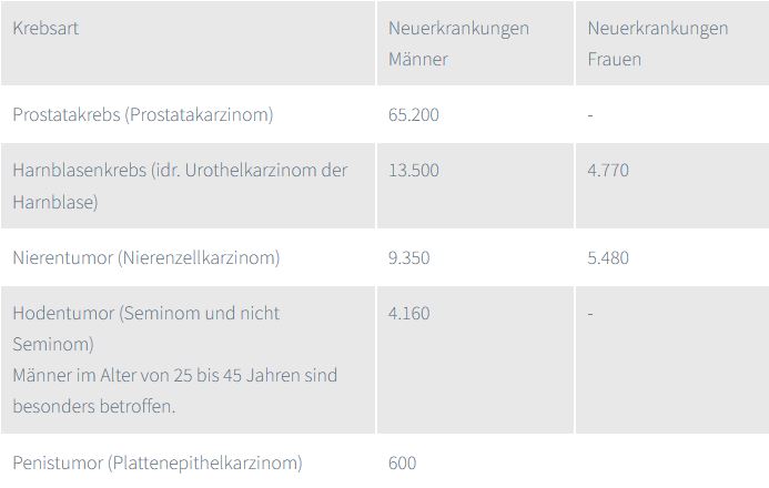 Häufigste Krebsarten der Uro-Onkologie